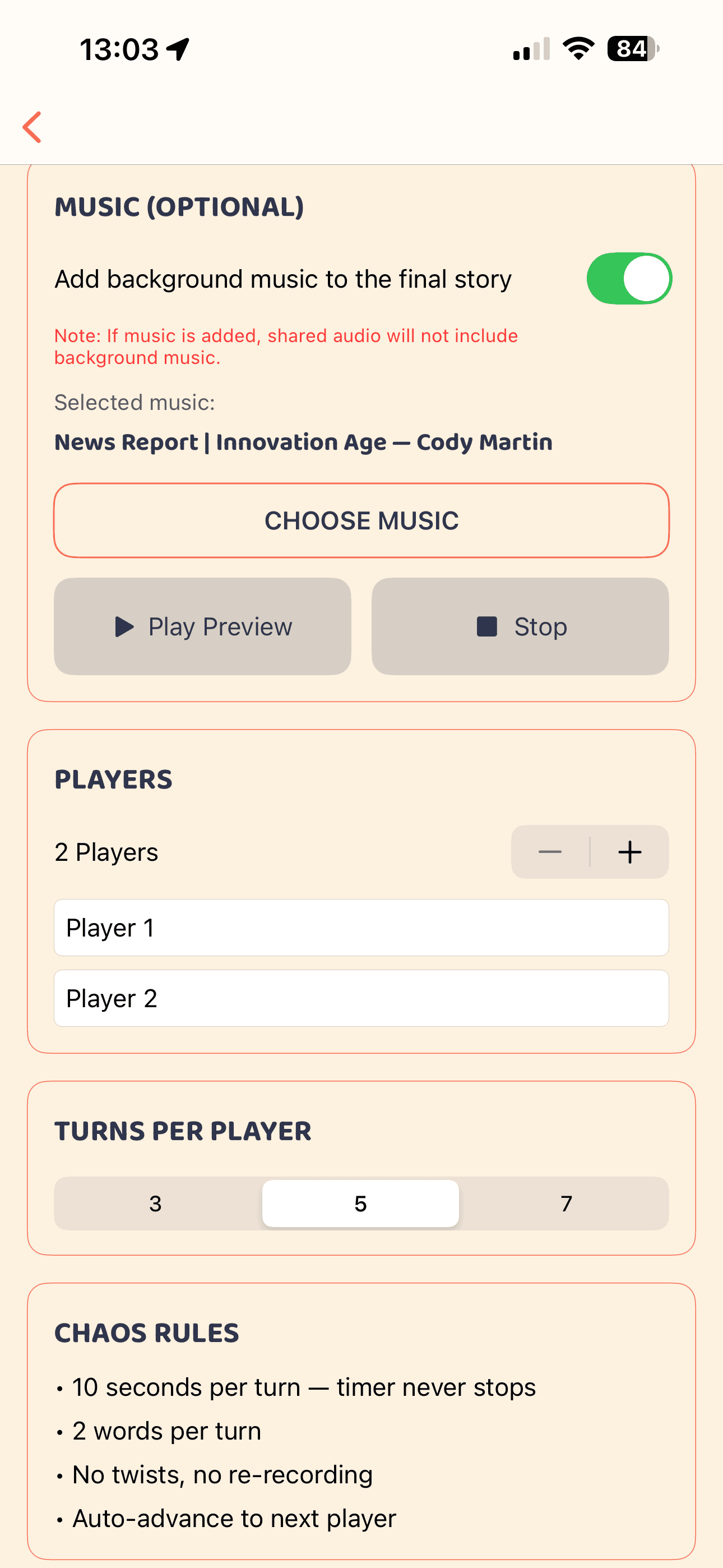 Choose Classic Mode to plan your sentence and re-record if you like, or unleash Chaos Mode for rapid-fire storytelling where the timer never stops!