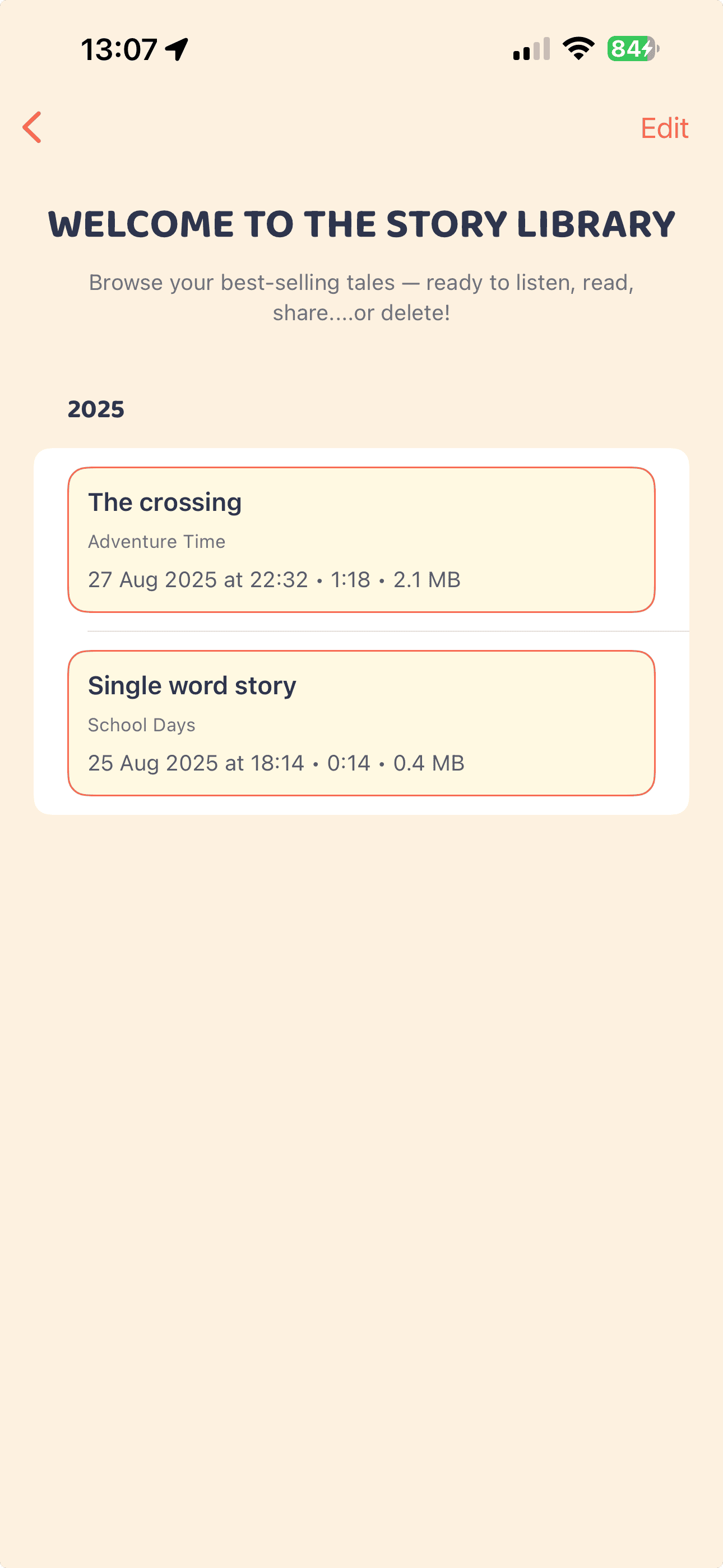 • Built-in story library to save, replay, and share your favourites