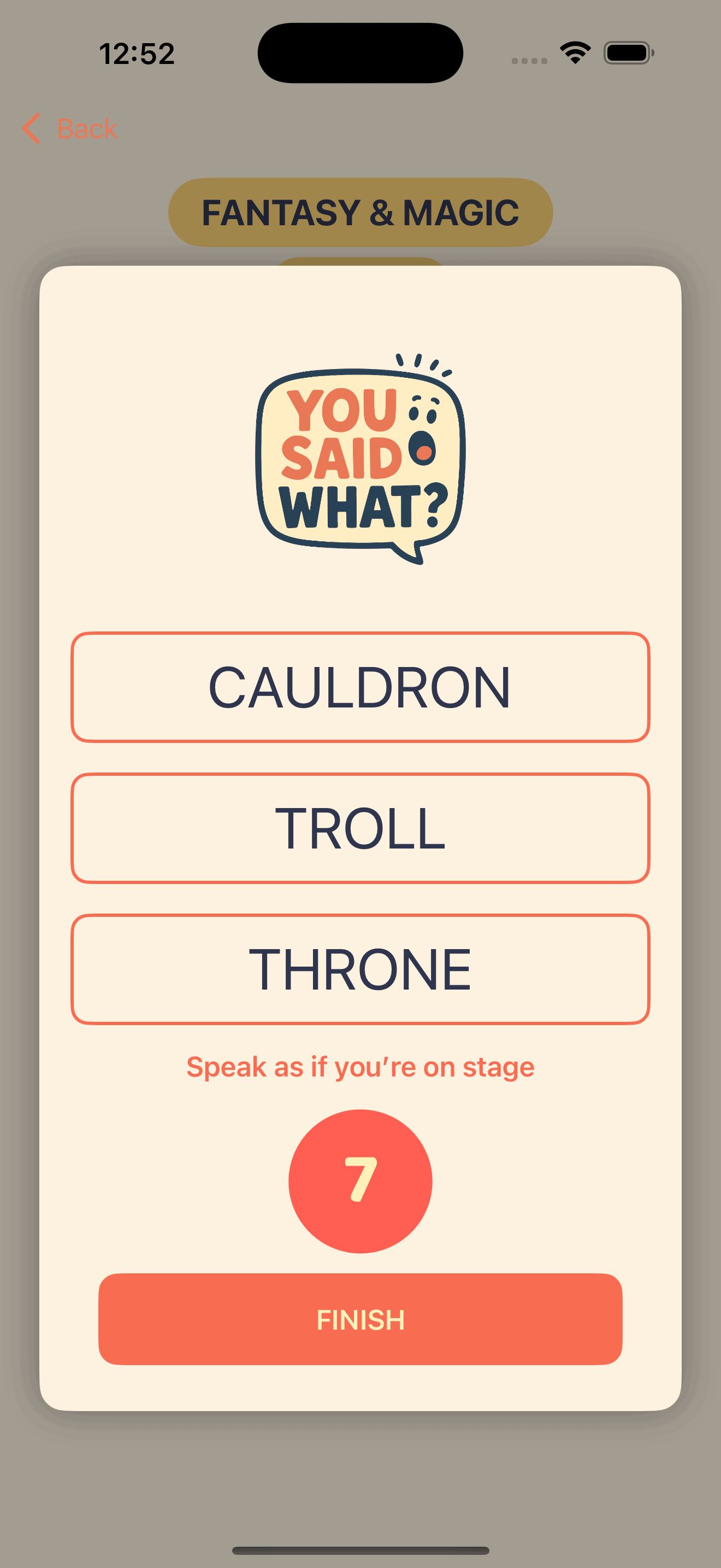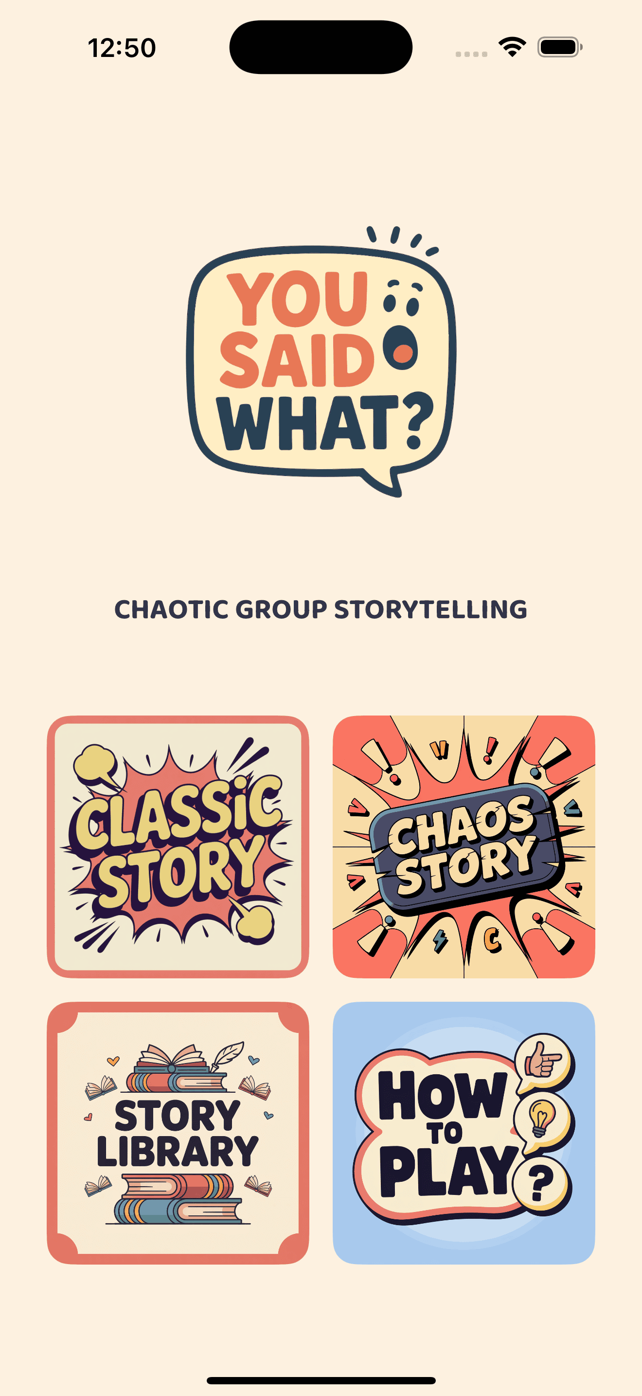 You Said What? is the party storytelling game that guarantees laughter and chaos. Gather 2–20 players, pick a theme and genre, and take turns recording your lines. Each player is given random words (and sometimes a twist!) to weave into the story. At the end, the app stitches everyone’s recordings together into one unpredictable adventure—with a transcript you can read and share.