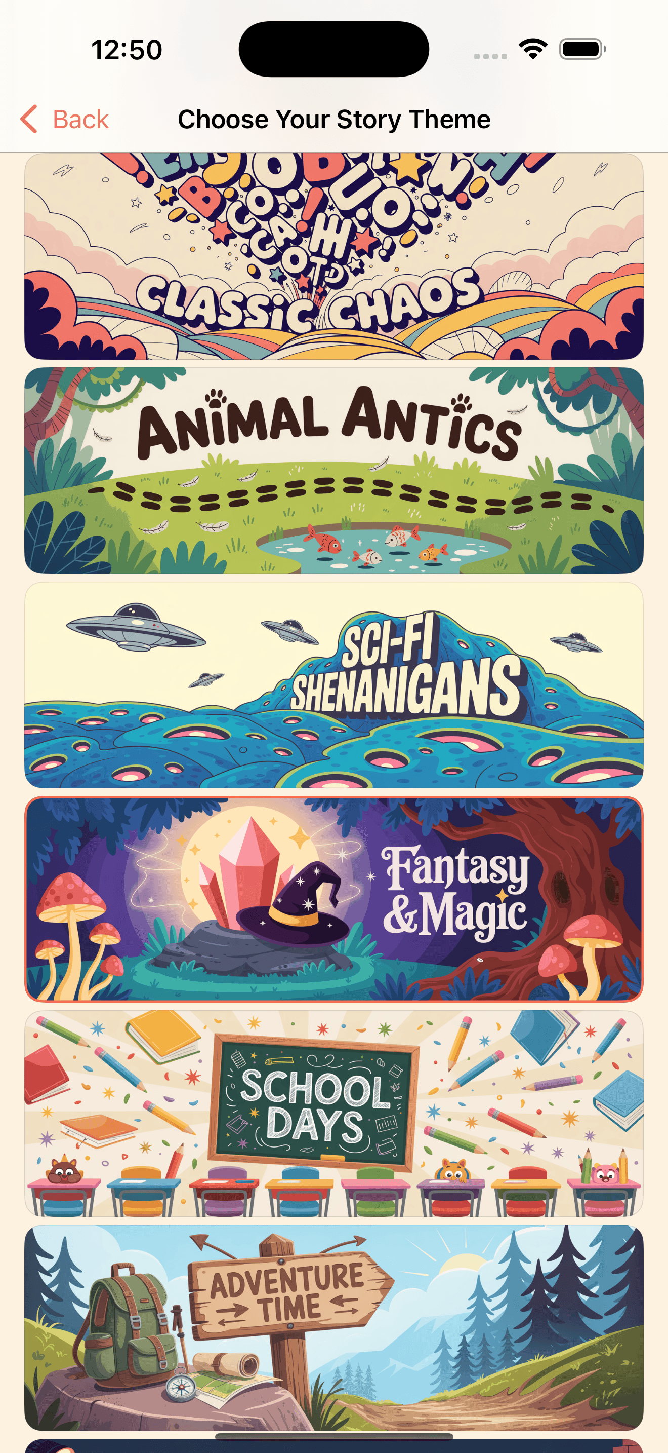 • Fun themes like Sci-Fi Shenanigans, Fantasy & Magic, Animal Antics, and more